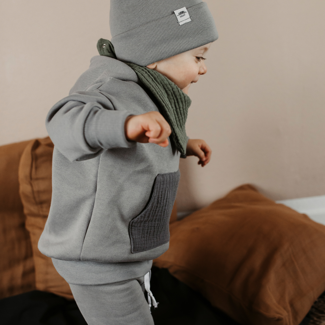 Bei Frau.Mina findest du Kindermode in neutralen Designs fern von Stereotypen, traditionellem Blau-Rosa, Blümchen-Muster und Co. Entdecke innovative Alternativen in zeitlosen Naturtönen, darunter Pullover, die mitwachsen, Shirts aus Bio-Musselin, kuschelweiche Mützen und vieles mehr.
