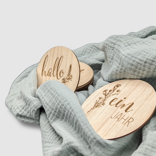 Holz Meilensteinkarten im personalisierten Säckchen