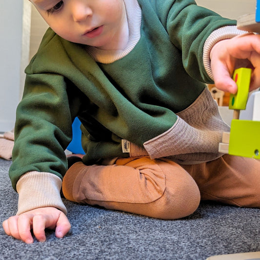 Grüner Colorblock Pullover aus Bio Baumwolle